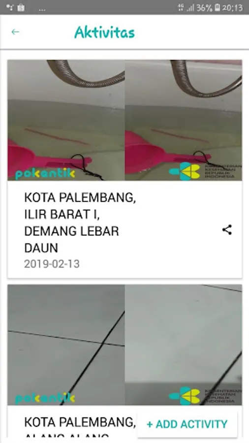 The data uploaded will go to the database website containing a map display of mosquito larvae-free areas at www.pokentik.com