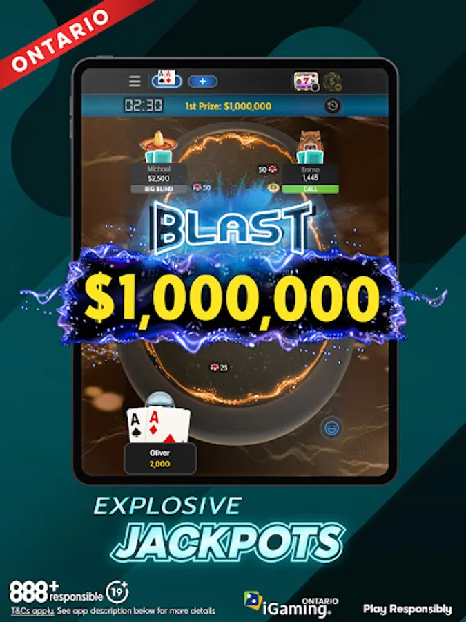 • Jackpot BLAST: Your cards could win you cash prizes up to 10,000 times your buy-in in this exclusive game
