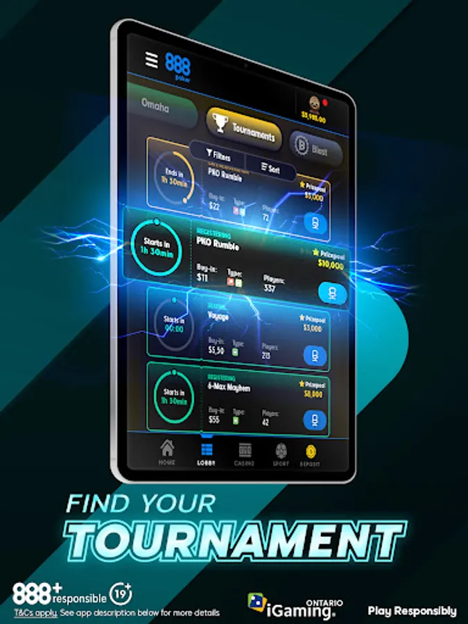 Step into our award-winning poker room and take your seat at a classic Texas Holdem poker tournament, play 888poker exclusive games like BLAST and SNAP or try your luck and get betting in our casino.