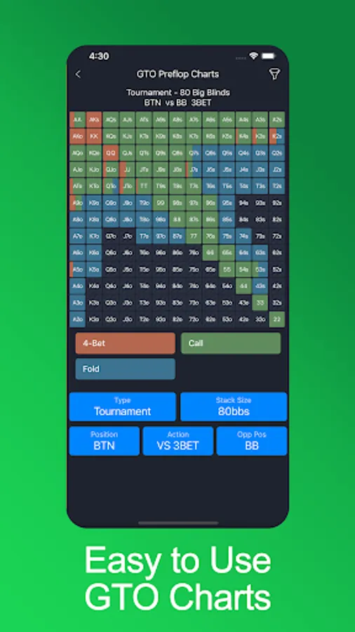 Get real-time answers for every Push/Fold situation when you need them most. Our Push/Fold Charts are easy to use and will help you maximize your equity when short-stacked.