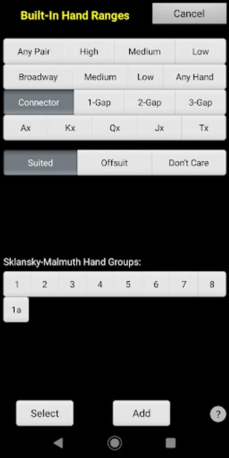 Poker is a game of incomplete information; we need to think in terms of *ranges of hands*. PokerCruncher surpasses the standard features, e.g. range equity breakdown heat maps and hand combo stats. Full grid of all 169 starting hands, top x% of hands slider, select hand combos (suits and weights) in hand ranges, extensive built-in hand ranges, save/load and export/import hand ranges, …