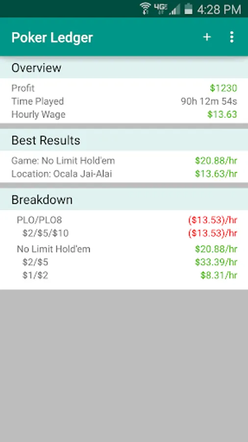 Poker Ledger is the best free bankroll tracker and manager available. No subscription, no in-app purchases, no restrictions, no ads!