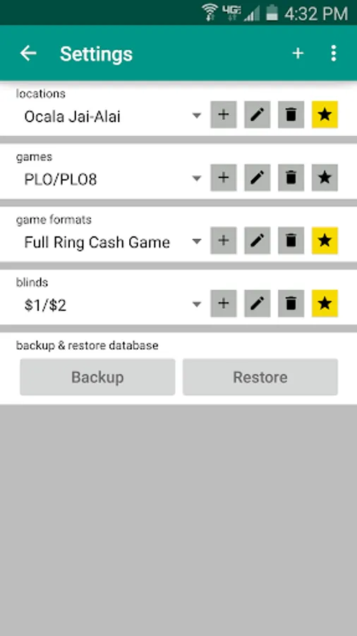 - Create your own locations, games, game formats, and blinds (or choose from pre-defined options)