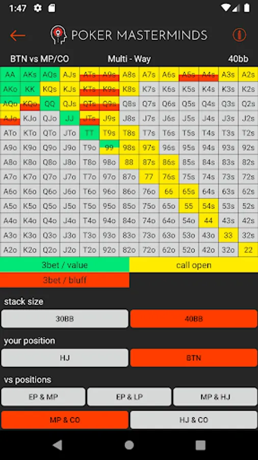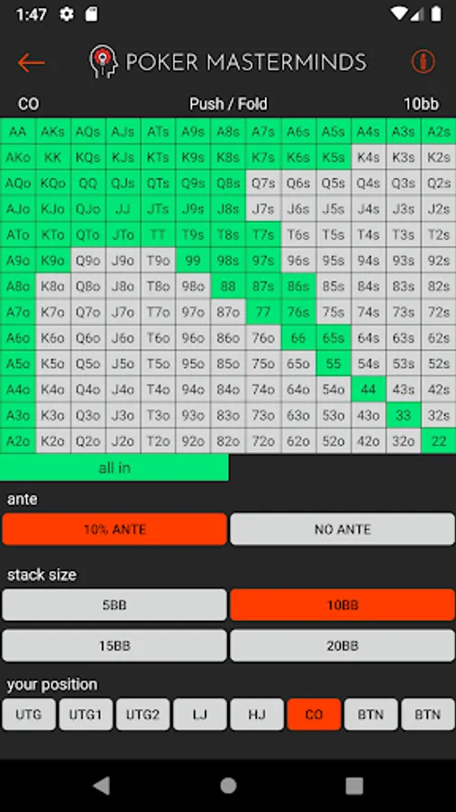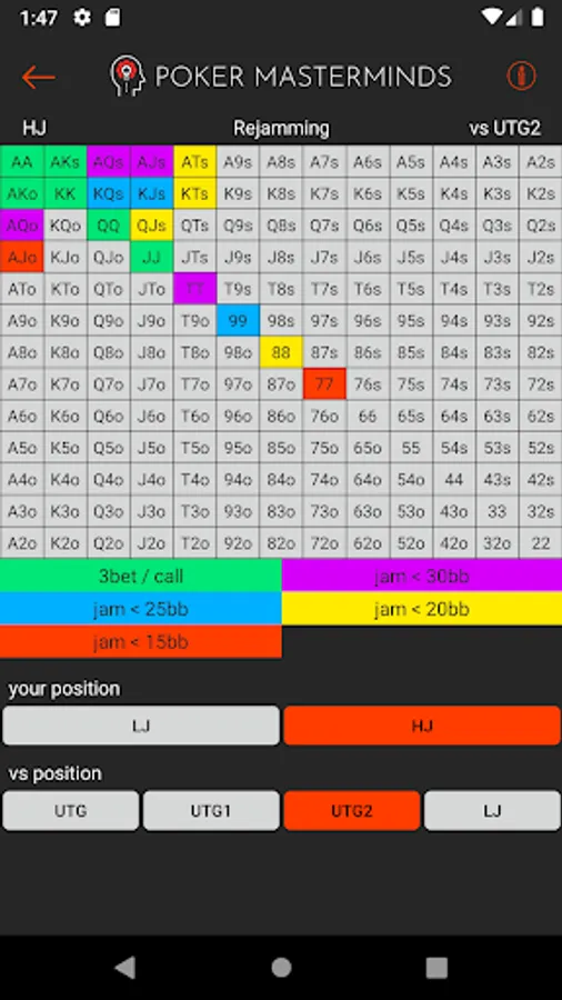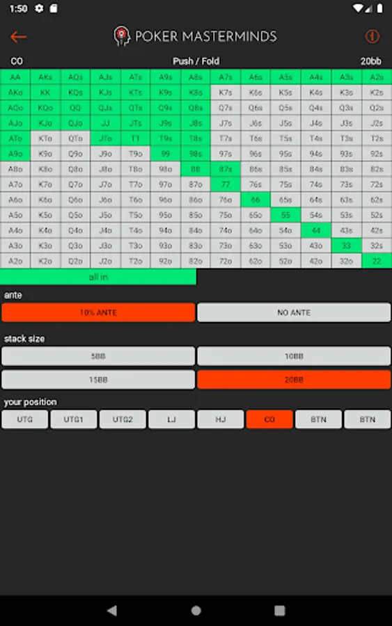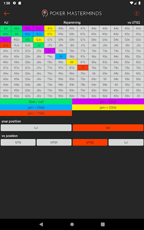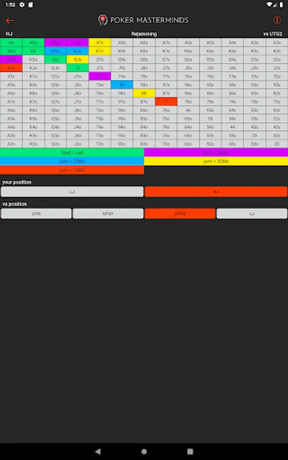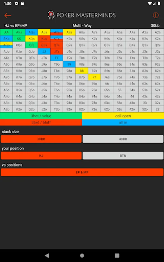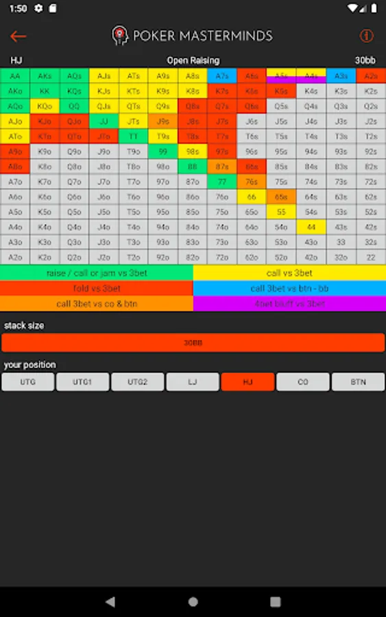 The Preflop Advantage contains easy to navigate and read, color-coded charts which makes it the perfect companion to live play whether you are playing in a live event or playing online. Check your ranges instantly and see if you made the right decision.