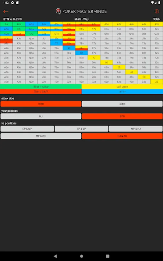 The Preflop Advantage Lite is a limited version of The Preflop Advantage. It contains a limited amount of preflop ranges with the intention to give you an idea of what you can expect in the full, paid version of The Preflop Advantage. The paid version has more than 600 ranges for 9 different preflop situations.
