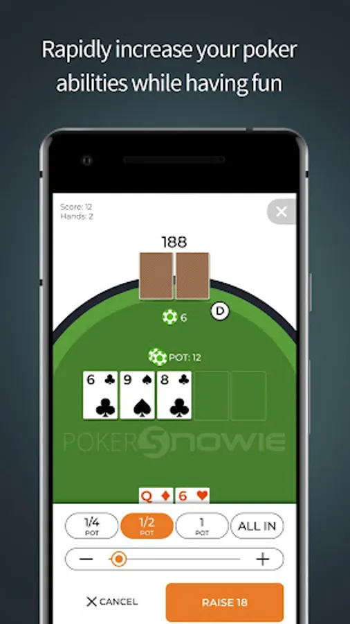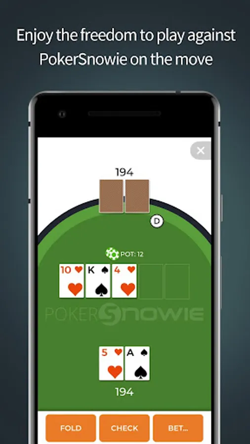 PokerSnowie is an Artificial Intelligence Poker Software, designed to improve the No Limit Hold'em Poker performance of all players. This will help you become a stronger player while you are having fun, rapidly increase your experience level and avoid the pitfalls of trial and error, all from your Android mobile devices, whenever, wherever!