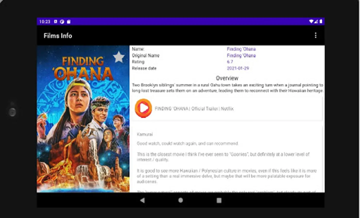 The opportunity to watch trailers for films, as well as read reviews of many users who have watched the films.