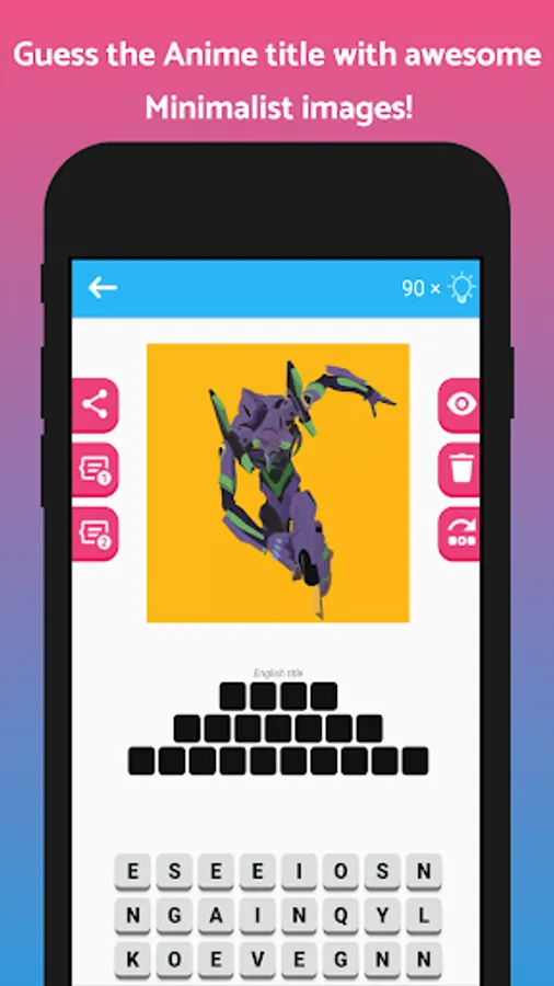 Guess the Anime Quiz is an anime quiz game where you guess the title of an anime with a given image. It contains a lot anime from anime series to anime movies. Very fun playing with minimalist high quality images. A lot of available hints to help you!