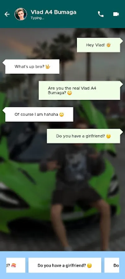 With this application you can simulate a fake chat with the youtuber Vlad A4 Bumaga (Vladislav Andreyevich Bumaga or A4omg) to prank your friends and make them believe that you have contact with the youtuber Vlad A4!