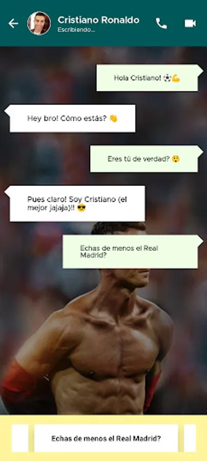 With this application you will be able to simulate a fake chat with Cristiano Ronaldo to play a prank on your friends and make them believe that you have contact with the former Real Madrid footballer Cristiano Ronaldo!