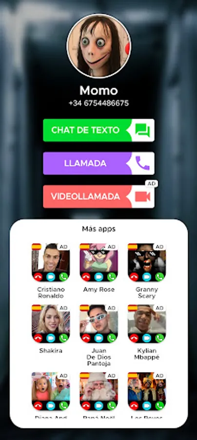 With this application you will be able to simulate a video call with Momo to play a prank on your friends and make them believe that you have contact with the horrifying humanoid Momo (how scary!)