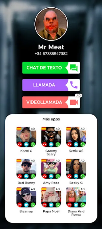 They are not real calls, they are just an imitation! The purpose of the application is only to make you have a fun time and stop being bored, being able to prank your friends or family by simulating the call with Mr Meat.