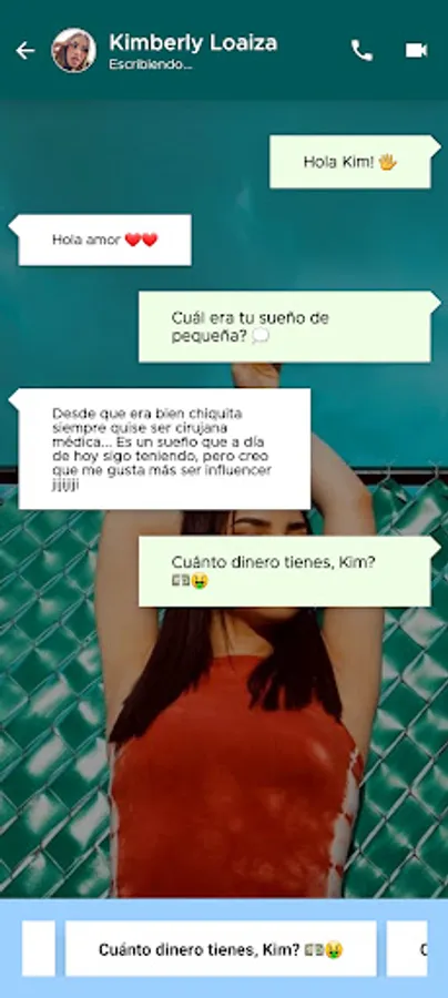With this application you will be able to simulate a fake video call and chat with Kimberly Loaiza to play a prank on your friends and make them believe that you have contact with Kim Loaiza!
