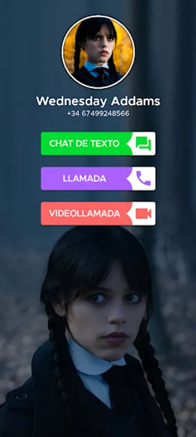 They are not real calls, they are just an imitation! The purpose of the application is only to make you have a fun time and stop being bored, being able to prank your friends or family by simulating the call with Wednesday Addams (or Wednesday Addams).