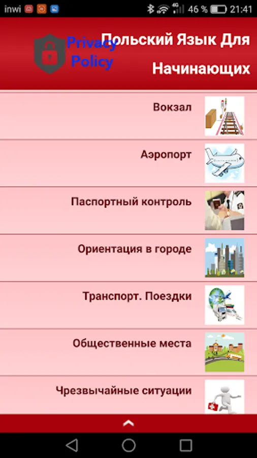 Each category contains the necessary phrases and words with transcription and clear pronunciation, and you can also share or save notes the word or phrase you need. And most importantly, the application does not require an internet connection