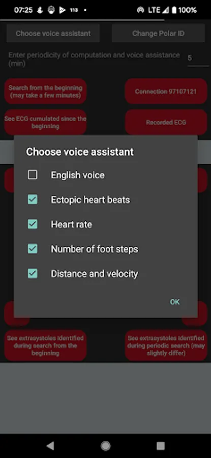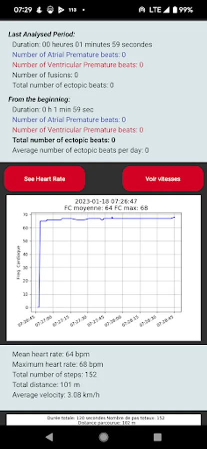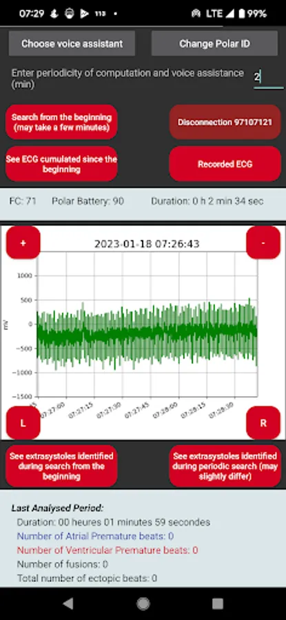 The sensor accelerometer of the POLAR H10 makes it possible to calculate the number of foot steps or strides during a walk or a run. The application allows you to calculate an approximate distance traveled as well as an average speed. The user gives a time interval which defines the frequency of the ECG signal processing and POLAR H10 Arrhythmia will give periodically voice indications on the number and type of abnormal beats detected, the average, maximum and instantaneous heart rate, as well as in the case of a physical exercice, the number of steps, the approximate distance covered and the speed. It is possible to perform an analysis of the ECG signal from the beginning at any time. There is no time limit in using the application which can run for hours in the background allowing continuous monitoring of your heartbeats. It is also possible to analyze ECG signals already stored on your device. These are saved in real time in the Documents folder of the Android device. When launching the application for the first time, please indicate the ID of the Polar H10 device (written on the edge of the sensor) then restart the application. This application is for educational purposes and does not replace a medical diagnosis. If you think you are experiencing heart rhythm disturbances, please consult your doctor.