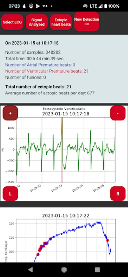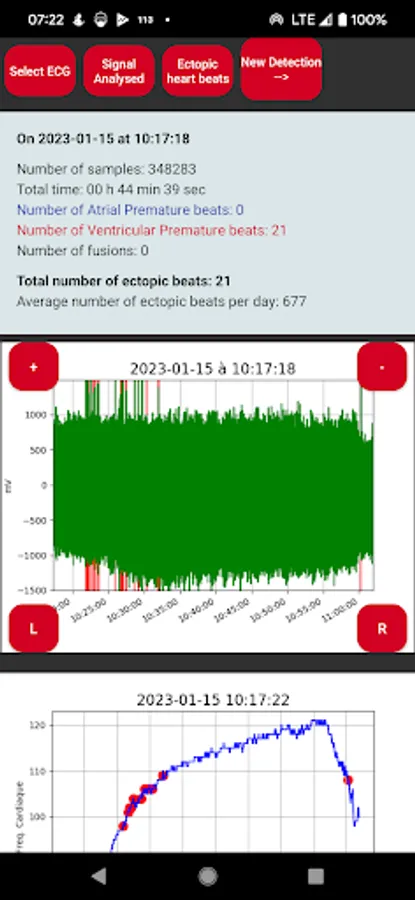 Polar Extra application uses the POLAR H10 heart rate monitor to detect ectopic heartbeats at rest or during exercice. Beats occurring prematurely and outside the physiological heart rhythm are called extrasystoles. The POLAR H10 bluetooth connection allows you to record in real time on your Android device, the electrocardiogram (ECG) as well as your heart rate and in the case of a physical exercice, the accelerometer sensor data from the POLAR H10. The ECG signal is processed using a convolutional neural network to distinguish between normal beats and premature beats and to detect this type of cardiac arrhythmia. The neural network makes it possible to detect the RR intervals (time interval between two beats) in the signal corresponding to ectopic beats. This convolutional neural network also performs the morphological analysis of the signal. This analysis allows thanks to the use of a large public database (Physionet.org) to learn the shapes of beats corresponding to the two types of premature beats: Ventricular Premature Beat and Atrial Premature Beat. It should be noted that the model was validated using a part of the Physionet database completely independent from the part used to build the neural network. The detection of ventricular and supraventricular extrasystoles is done in real time in the application as well as heart rate monitoring.