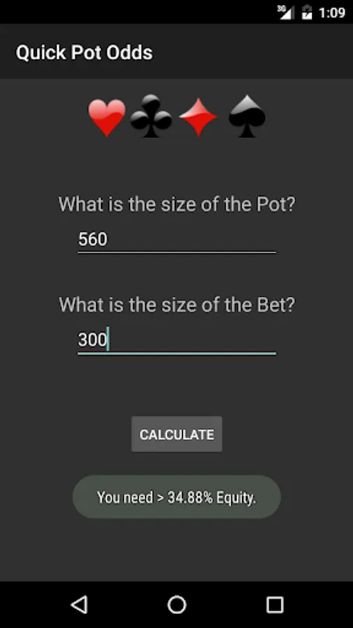 Quick Pot Odds will instantly give you your pot odds as a percentage.