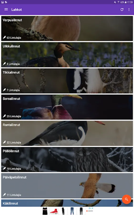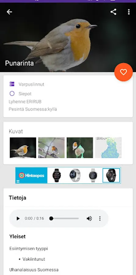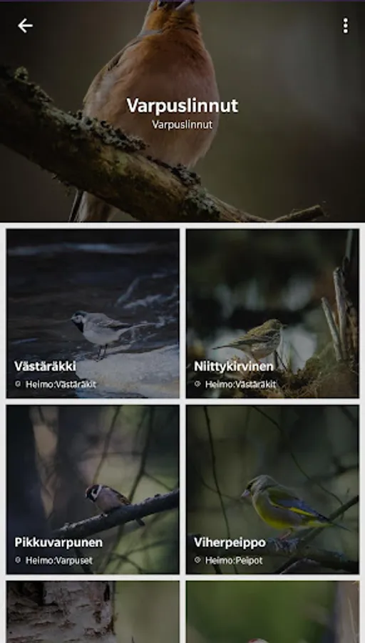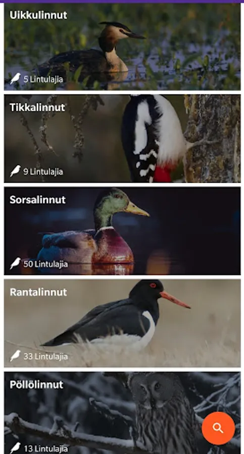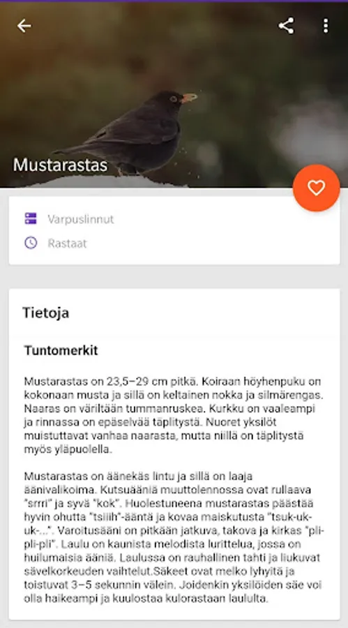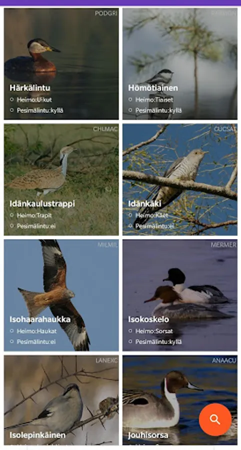 Suitable for all bird watchers. The application finds species that regularly nest in Finland, the most common migrants and rarities.