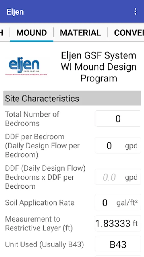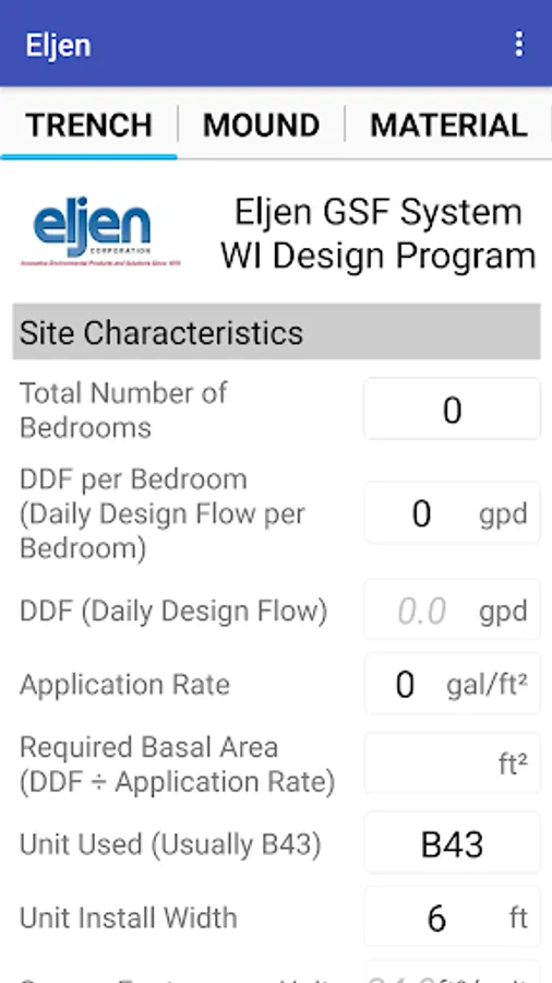 This is a design application to be used in the design of the Eljen GSF product for Wisconsin trenches, beds and mounds.