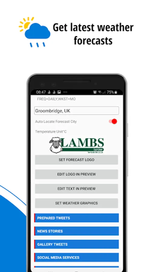 Post daily weather forecasts for anywhere on the planet or automatically from the location of your phone. All background graphics are completely configurable.
