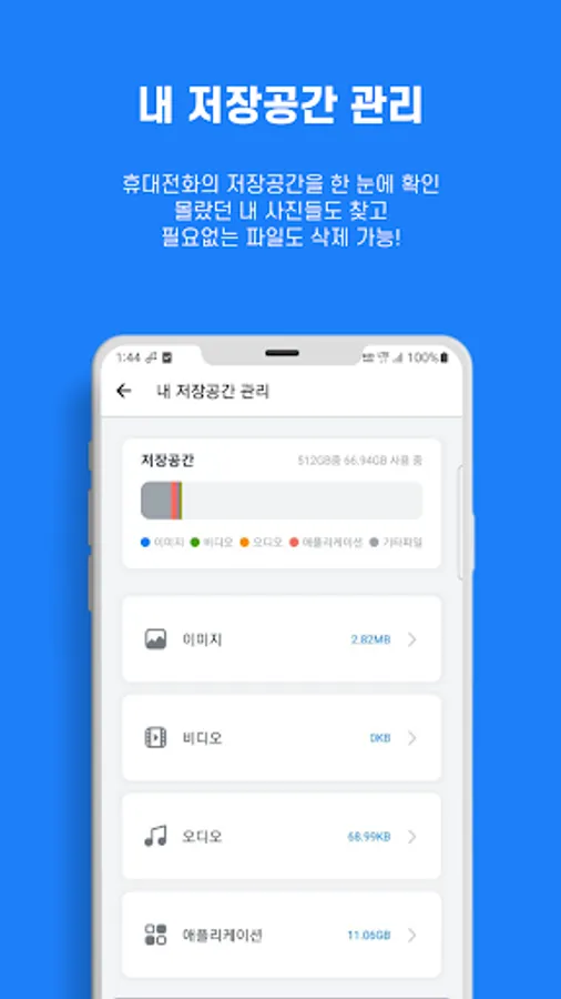 • My storage space management: A storage space management function that allows you to view your phone’s storage space by category and delete files.