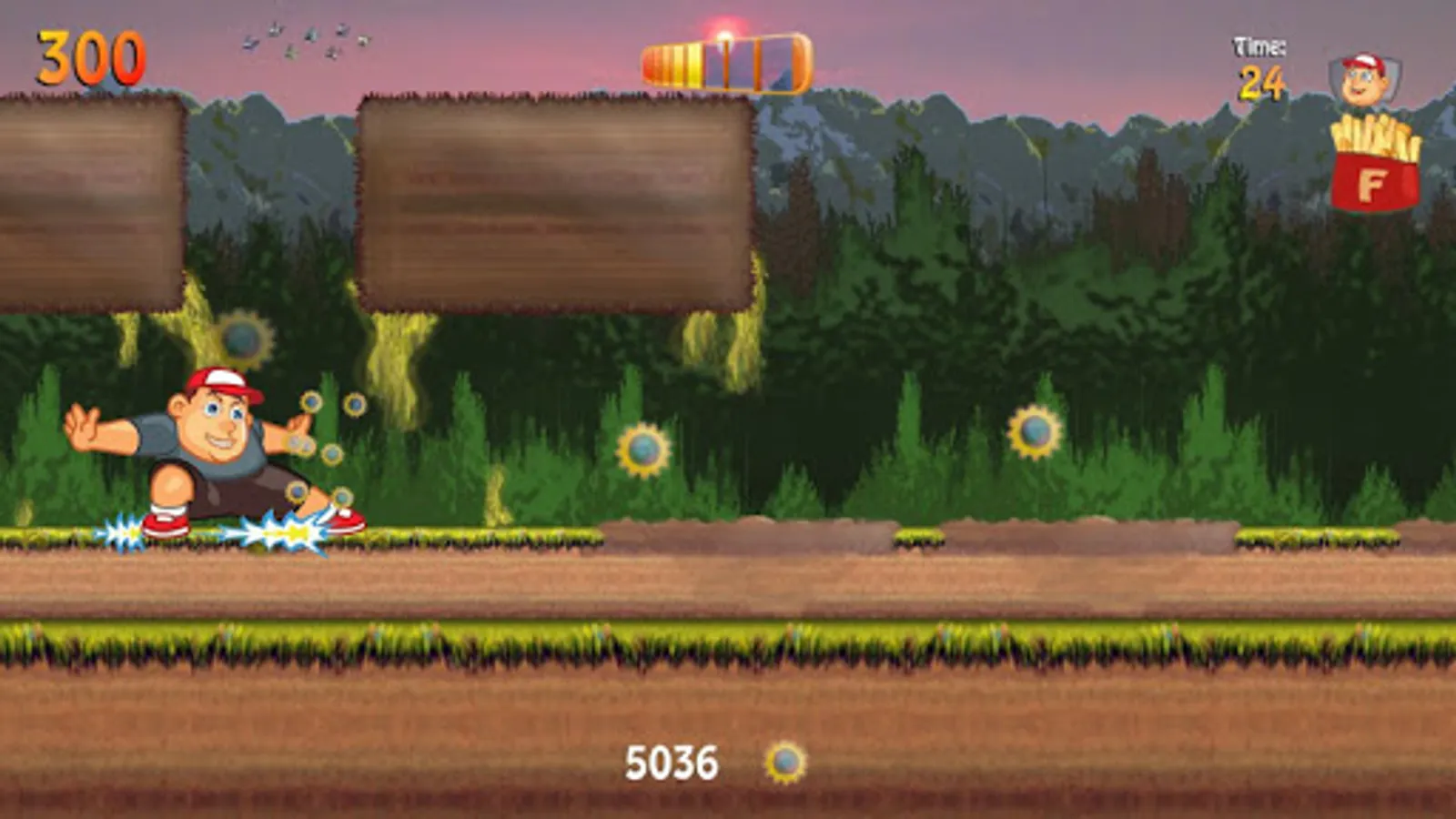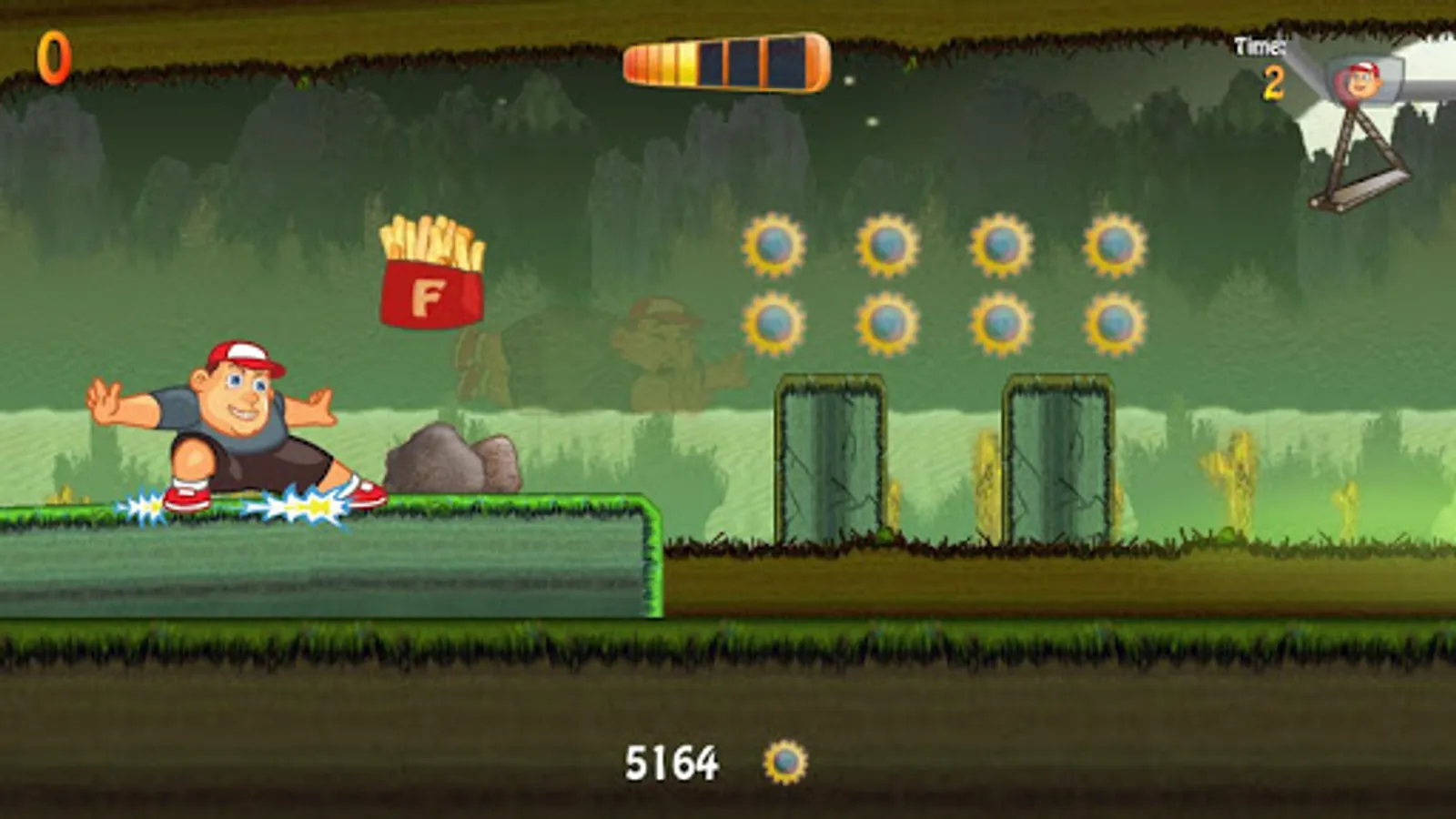Get extra food while running to improve energy and run speed. Collect coins to buy new clothes and power to run faster, jump higher oder lower your requiered food level. Discover new Worlds and parcours in Greenwood Park, Ice Mountains, Sand Valley, master the Toxic Temple Tours or show your skills in the cave trials.