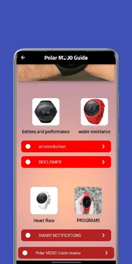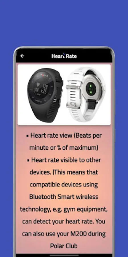 Content of Polar M200 Guide Guide app :-