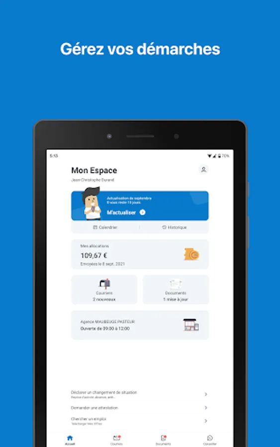 • Photograph and send documents directly from your mobile to justify your update and your changes in situation.