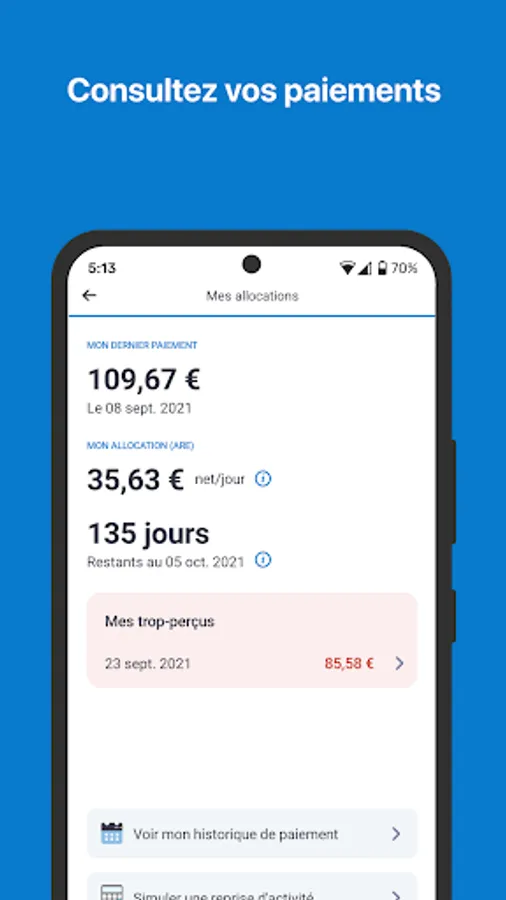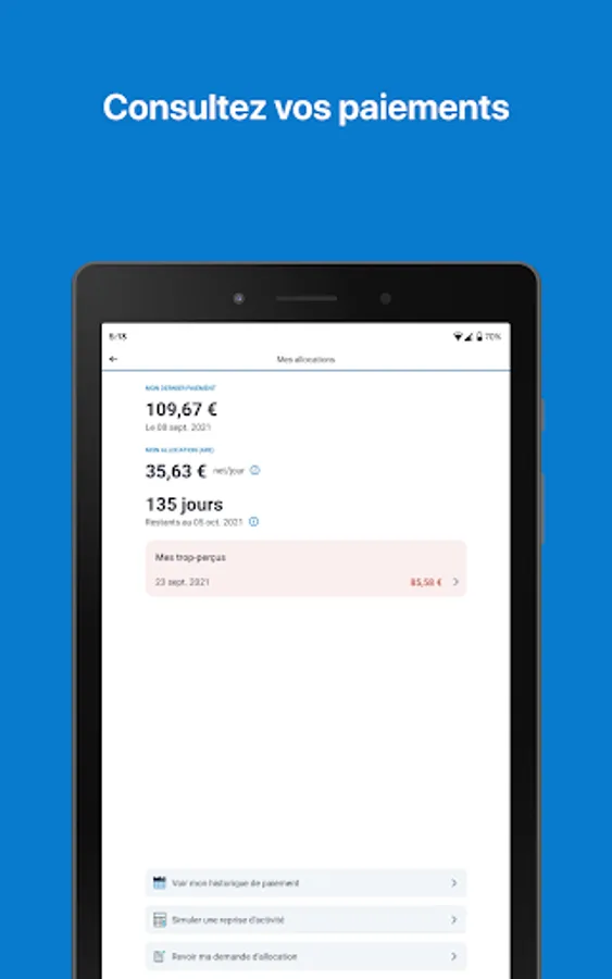 • Simulate a resumption of activity to find out the new amount of your allowances,