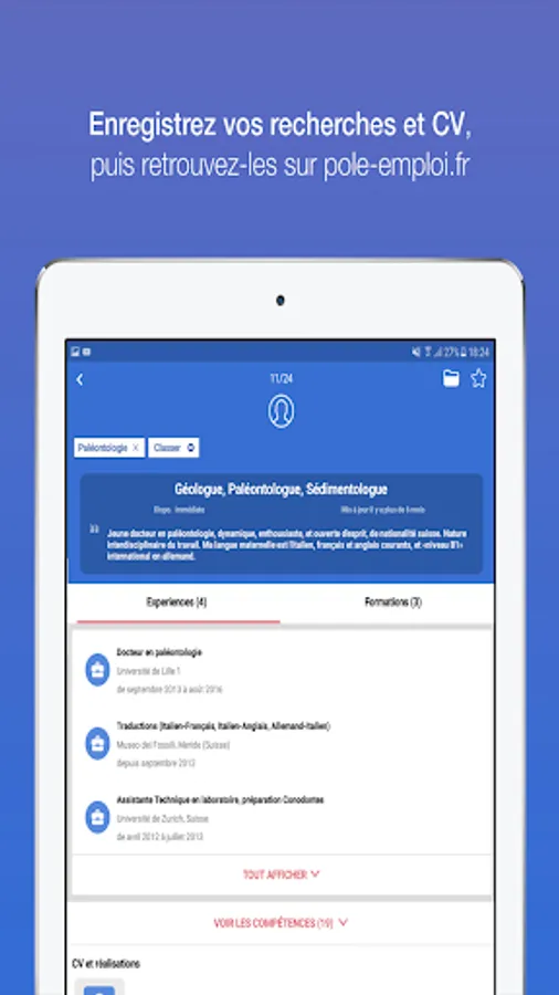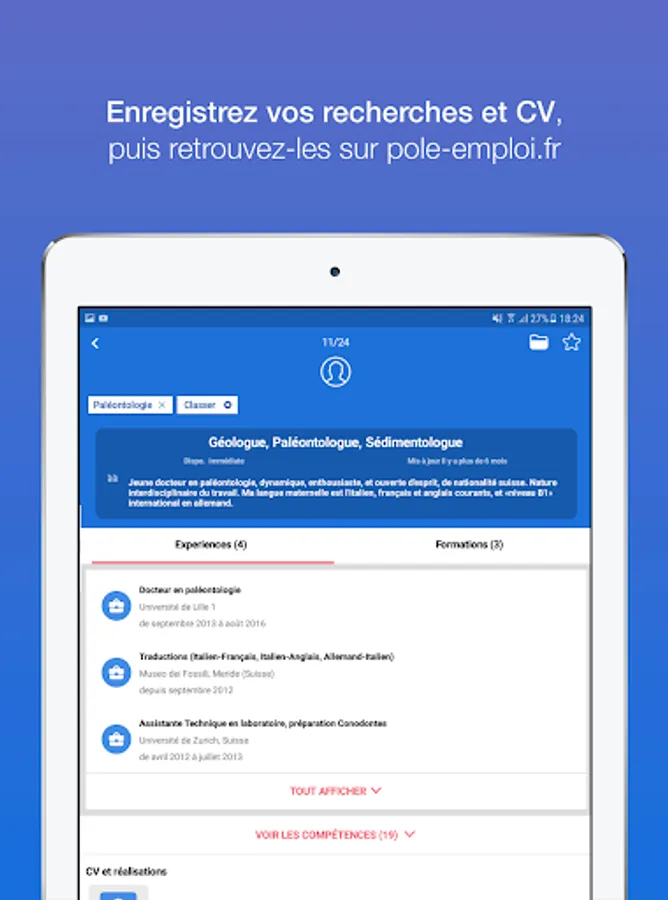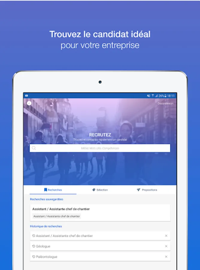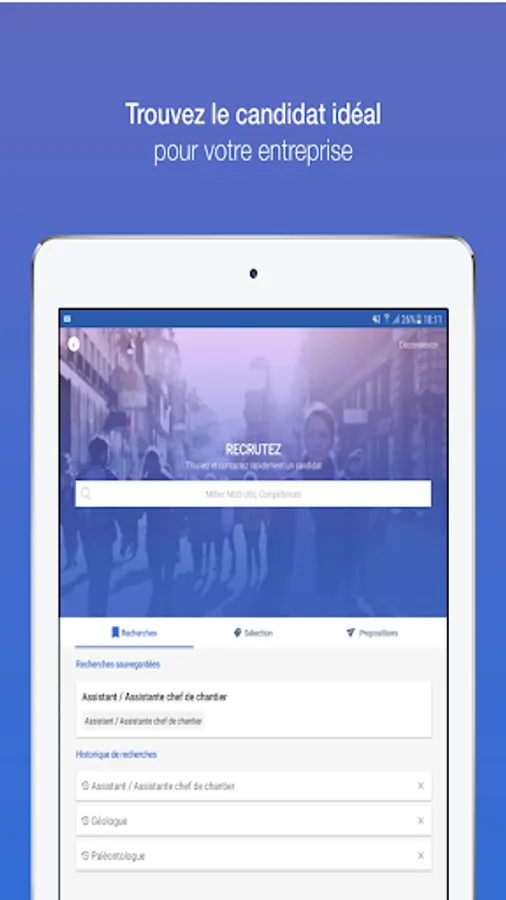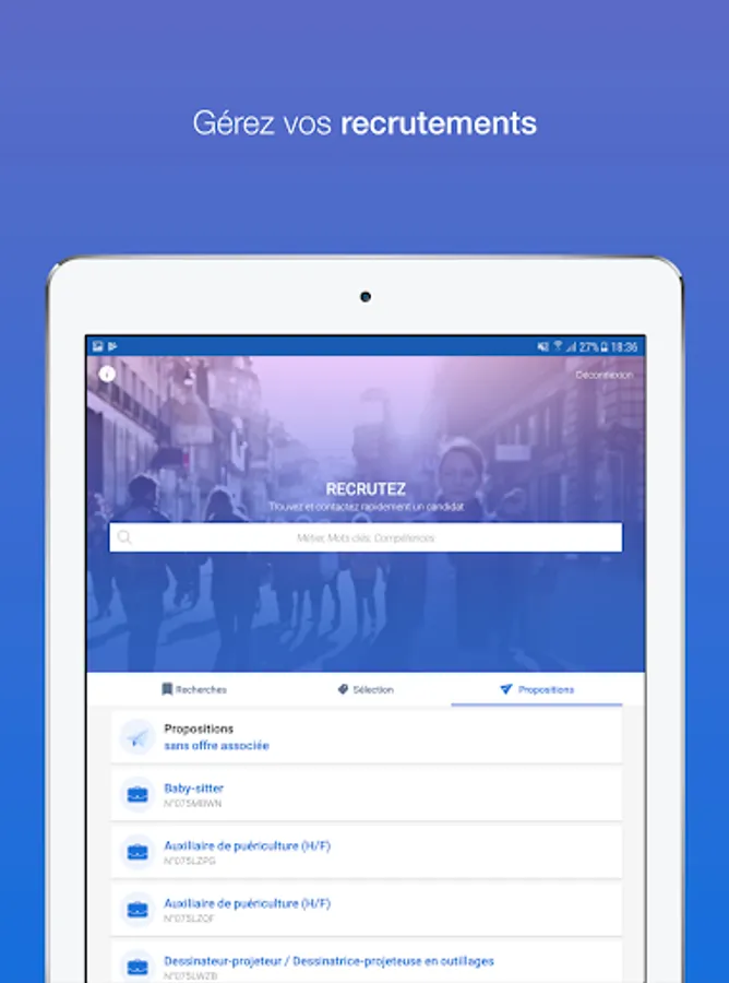 Recruiters, download the "Je Recrute" mobile application from Pôle emploi which allows you to find candidates among the largest database of profiles in France. Whatever your sector of activity, your location or the size of your company, with a few clicks, you can easily: