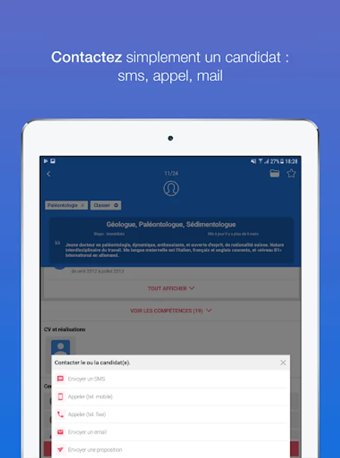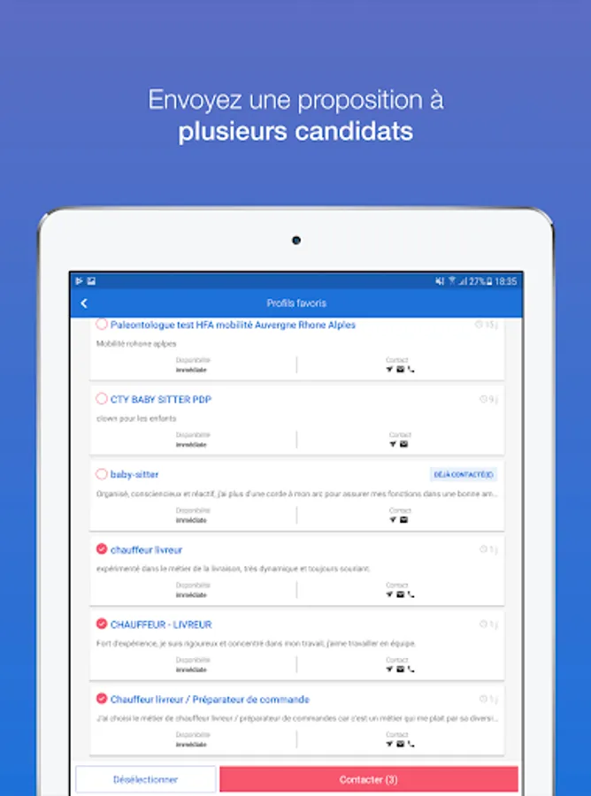 • send a proposal to the candidates by email, SMS, phone or via Pôle emploi