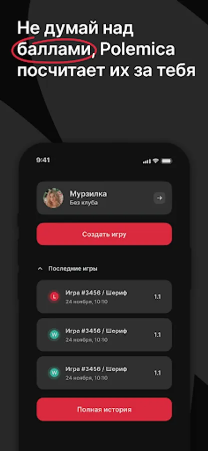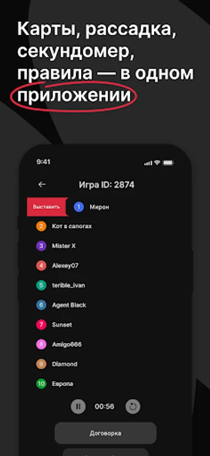 Polemica is an application for playing the intellectual and psychological game "Mafia".