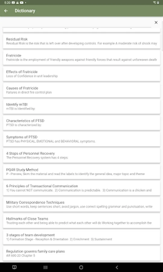 SSD was around for years, many NCOs grew up with it and have it as a cornerstone of their leadership style. Instead of throwing this good info out, we cherry picked the best of it to keep in this app. Quiz your squad or brush up yourself with flashcards, a dictionary search and a multiple choice quiz.