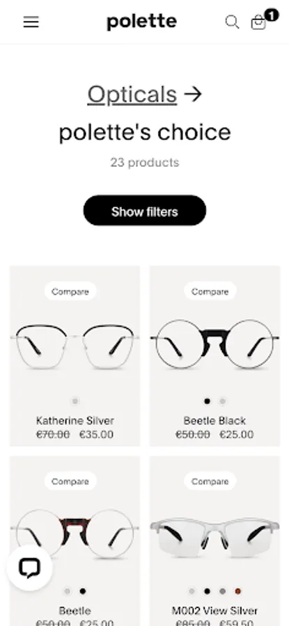 polette.com is an online optician that was founded in 2011. We display more than 900 products which are designed by our own team and we even introduce new arrivals every week. Furthermore, all our products come with the latest generation lenses which include all protective coatings.