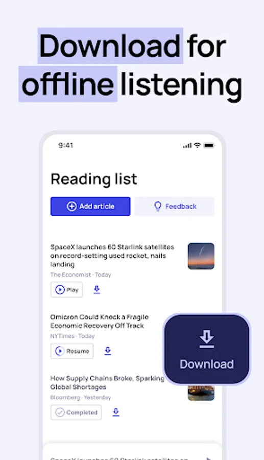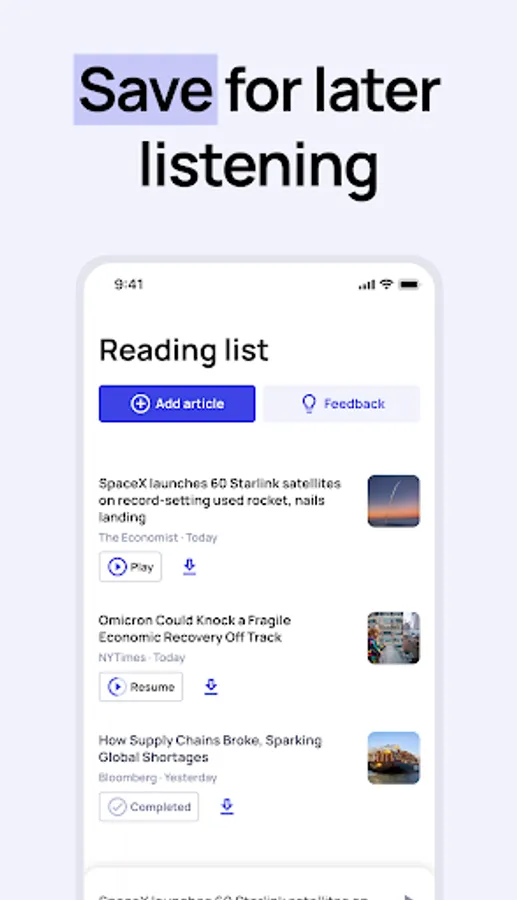 With Cite, you can save everything you find on the internet and have it automatically read to you later as if it were a podcast. With natural voices, you get a great listening experience. And as a nice bonus, you also get a better reading experience with a clean design and no paywalls, ads, banners, or cookie popups.