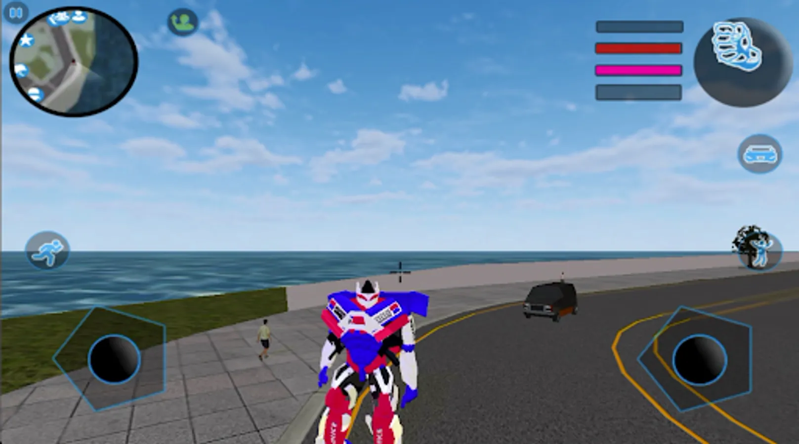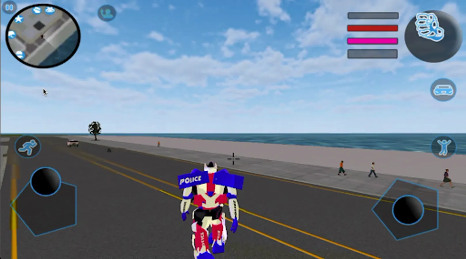 There is only you as a US Police Monster Truck Robot transform in the city you don't need a powerful police robot heroes fighters to help you, use your us police robot transform power to eliminate the gangster mafia and take place in your home town as a real us police monster truck robot transform. Get ready to transform from us police robot to monster truck robot and flying around building to rescue innocent people as a us police robot hero in one of the best flying robot games. Attention us police cops are ready for powerful police robot superhero fight so don't be afraid and stop any criminal robot transform in the street and experience a vast flying robot monster truck adventures in the crime city rescue and save innocent people lives as a kind police robot transform rope hero.