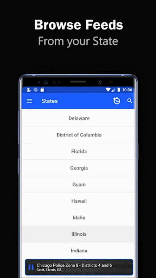 Police Scanner Online / Offline indicators makes it easy to tell if the audio feed is currently Online. Steam your favorites police feeds in the background and pause/play at any time through your phones notifications. Search for your desired police station radio by using Search, Top 50, Favorites or Navigate through Country / State / County location near you.
