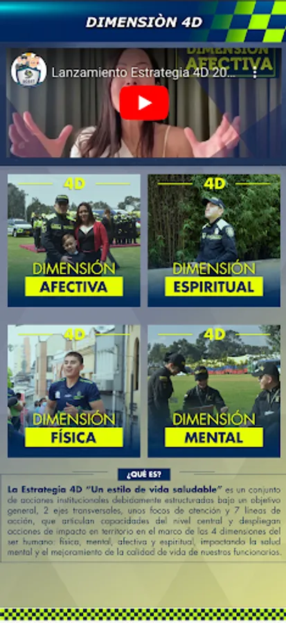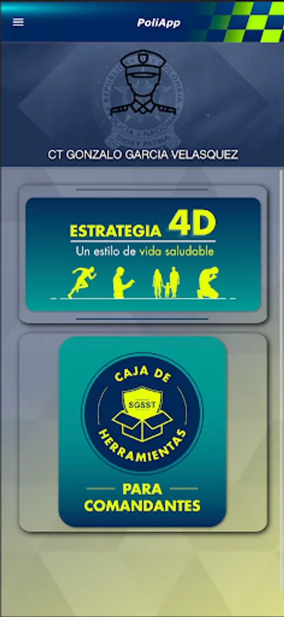 Mobile application for PONAL officials from Colombia with the intention of interacting with the 4 Dimensions of the Institutional Strategic Plan, including a toolbox for commanders according to information to perform functions according to the position.