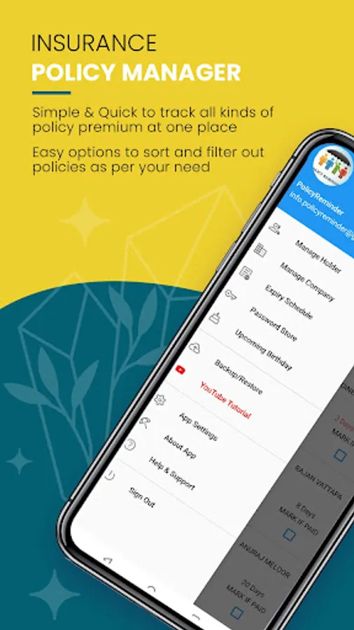 This app is designed to maintain insurance policy records for easy access and track premium due dates. This is very useful for individuals or agents.