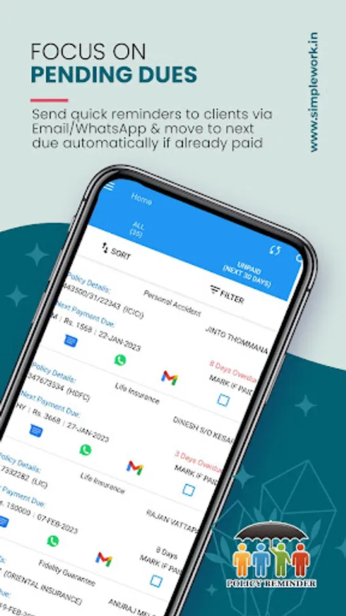 - Send premium due reminder via WhatsApp/SMS/Email.