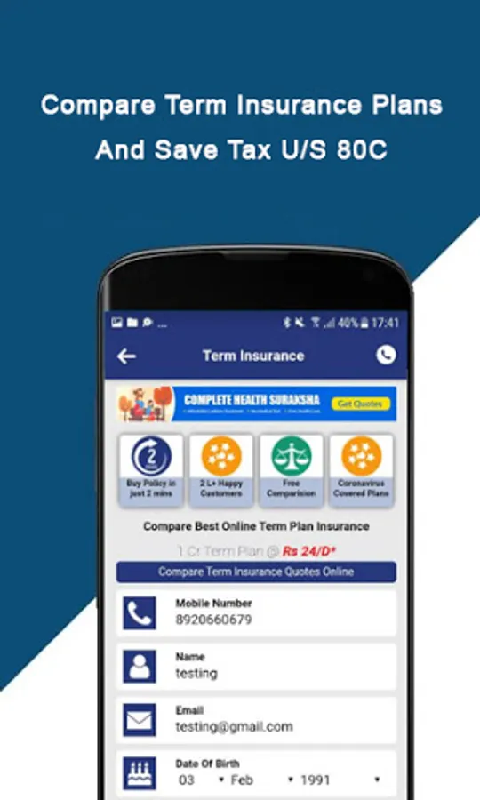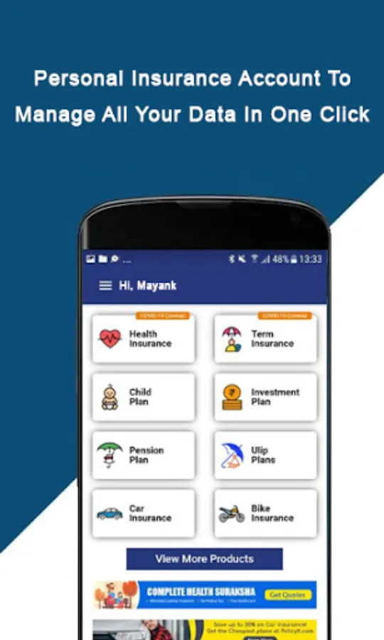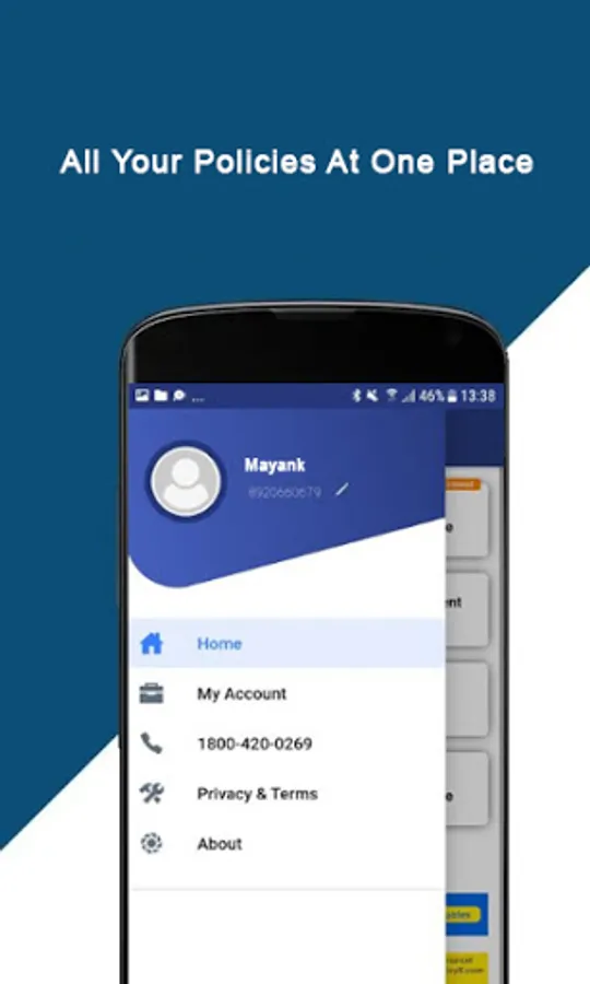 - Buy your insurance policy instantly from the app from wherever you are and maintain it simply on the app itself.