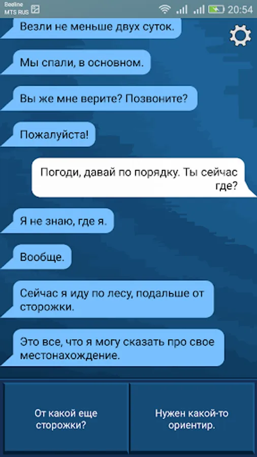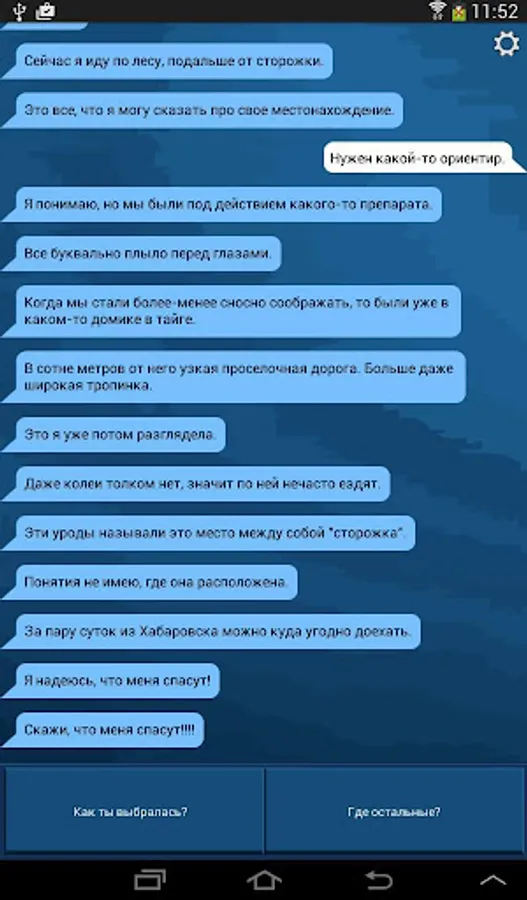 Taiga - an amazing story about the survival of a city girl, which happened in the taiga. Application is made in the form of textual game.