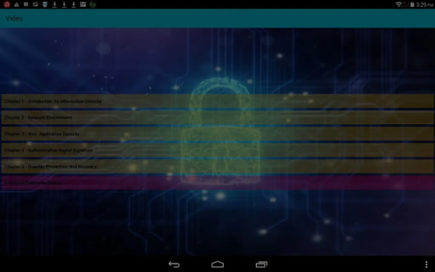 The Information Security App is a digital application for mobile devices developed to assist the Learning and Teaching process for Polytechnic Students especially for those enrolled the Information Security courses. This Information Security App provides a platform that can guide students to learn through online activities. This app consists of notes, videos, quizzes, past exam questions and games.