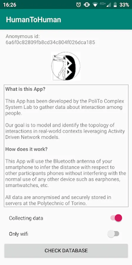 This App has been developed by the PoliTo Complex System Lab to study the dynamics of close-range interaction between people.