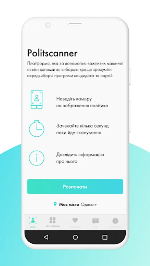Politscanner is a mobile application that helps you quickly and easily get information about the policy and its activities, biography, program and income. To use the application, you need to download it to your mobile device, and then point the phone's camera at the image of the politician you are interested in. In a few seconds you will receive detailed information about the activities of the politician, his biography, income and election program.