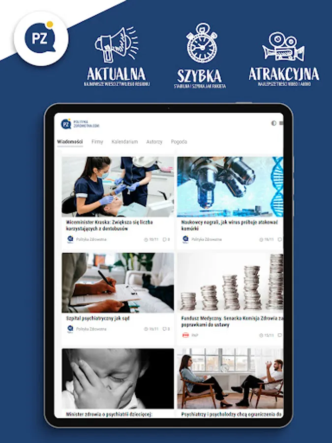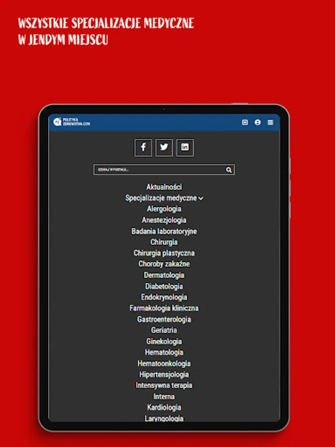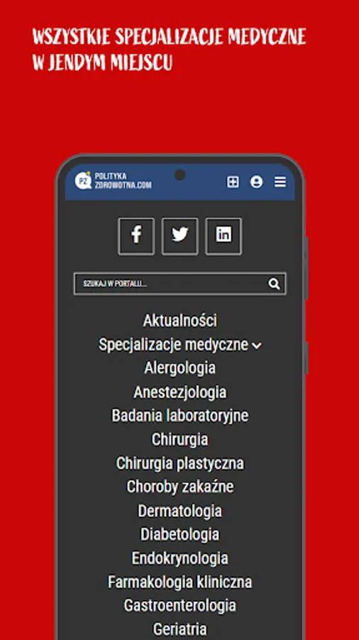 Politykazdrowotna.com is a reputable, highly recognizable and reputable information and analytical portal dealing with the health sector, published since 2015. It is one of the main and most visited medical industry media in Poland and 12th in the world in the Public Health And Safety category. During the pandemic peak, his publications and reports on the current situation in health, politics and the economy are followed by an average of 2 million readers a month. The editorial staff of the portal publishes its own news, expert and guide information on the website every day. They are supplemented with videos and podcasts. Selected materials are published in the form of a newsletter sent to almost 10 thousand. subscribers. Information is additionally disseminated on our own social media channels - Facebook, Twitter, LinkedIn, YouTube, Spotify.