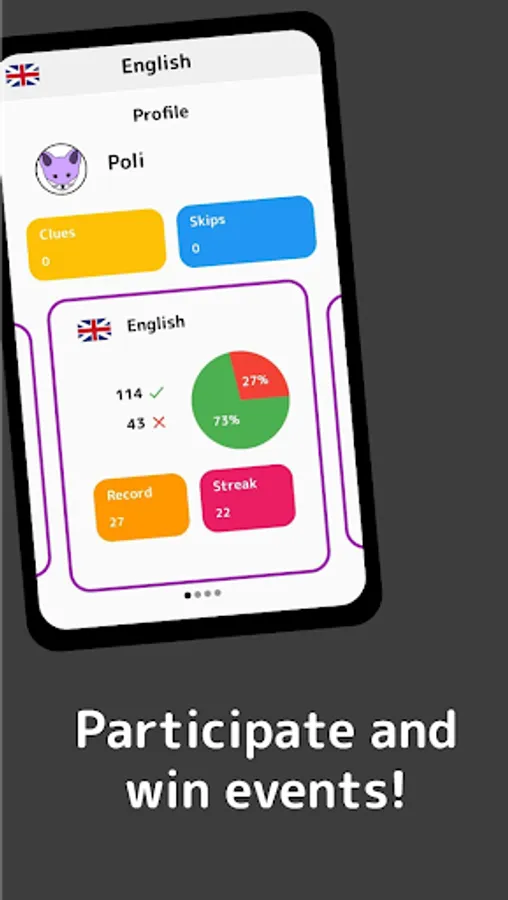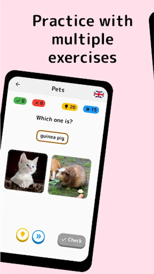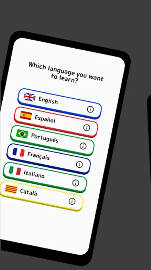 Learn vocabulary in 9 different languages: Spanish, Portuguese, French, German, Japanese, Italian, Korean, Catalan and English.