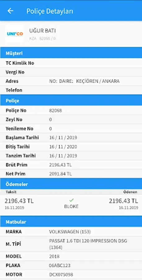 • Viewing Policy Information (Insured, Policy Date, Plate, License Number ...)
