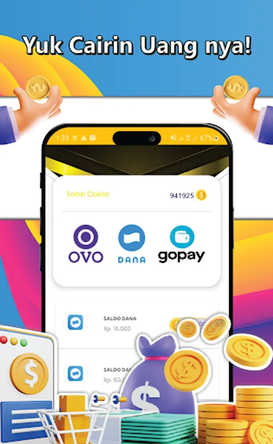 Various ways to make money quickly can be done online on various platforms, one of which is by using a money-making application. Money-making application is an application made to collect coins that can be exchanged into rupiah. The tasks he has to do are quite easy, just by completing existing missions or simple games, for example: fill in a question and answer quiz, play a wheel spin, play a game that only touches the screen, complete a card puzzle by rubbing it, fill in the words according to the pictures with the jelly, and if you want to get the most coins you have to log in every day.